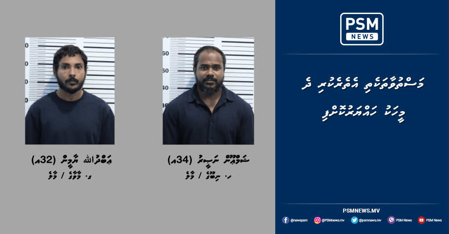 މި މައްސަލައާ ގުޅިގެން މިމަހުގެ 29 ވަނަ ދުވަހު އެ ދެމީހުން ހައްޔަރުކޮށް، ބަންދާމެދު ގޮތެއް ނިންމުމަށް ކޯޓަށް ހާޒިރު ކުރުމުން ދެމީހުން ވެސް 15 ދުވަހަށް ބަންދު ކުރުމަށް ވަނީ އަމުރުކޮށްފައެވެ.