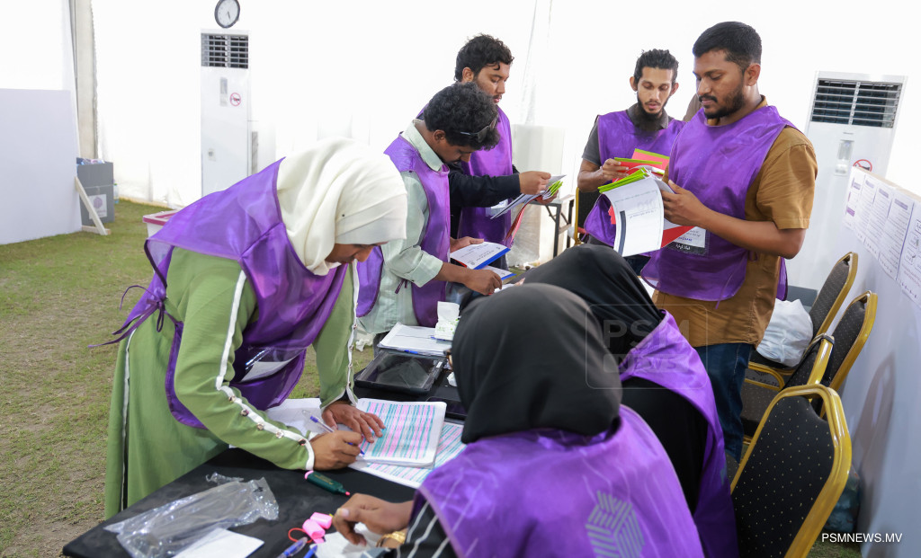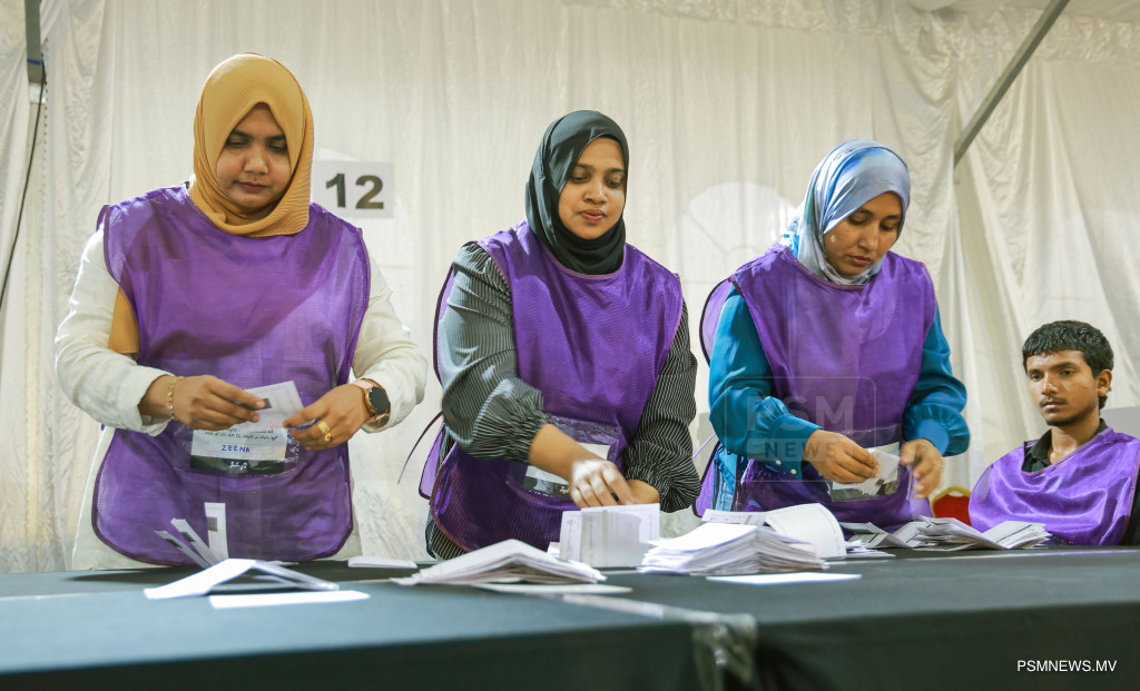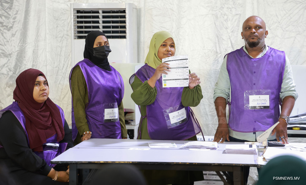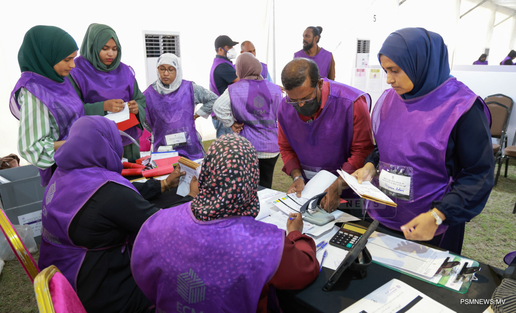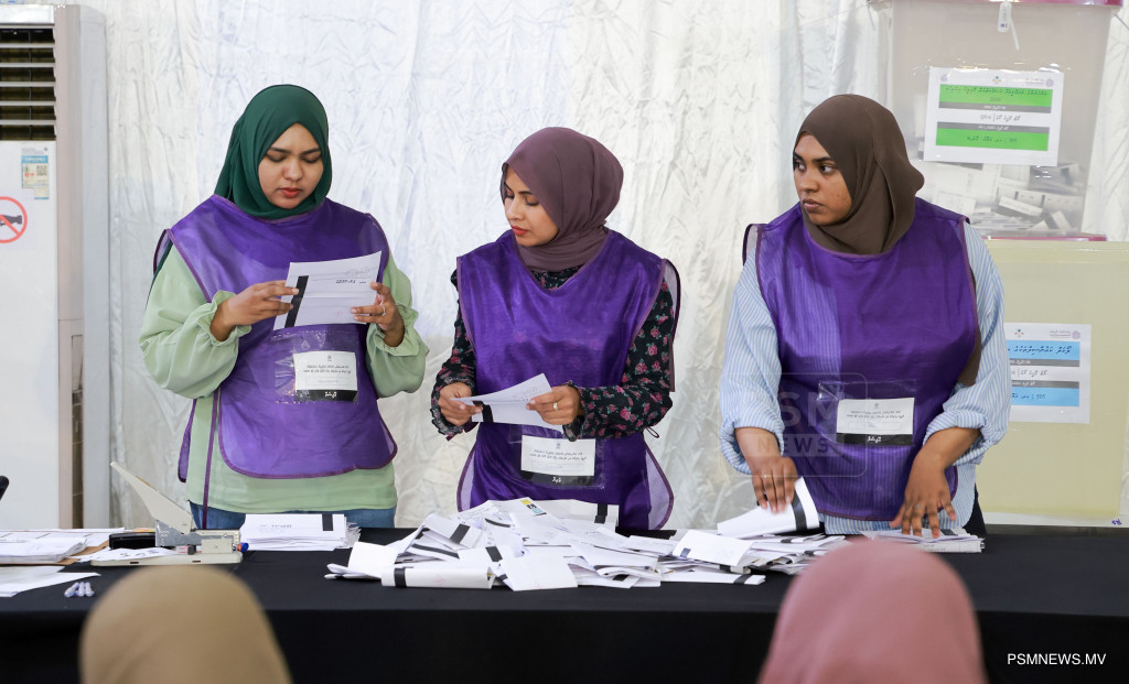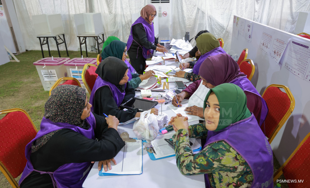 ލޯކަލް ކައުންސިލްތަކުގެ އިންތިޚާބާއި އަންހެނުންގެ ތަރައްޤީއަށް މަސައްކަތްކުރާ ކޮމިޓީތަކުގެ އިންތިޚާބުގެ އިތުރުން ރިޔާސީ އިންތިޚާބާއި މަޖިލިސް އިންތިޚާބު އެއްދުވަހެއްގައި ބޭއްވުމާއި ގުޅޭގޮތުން ރައްޔިތުންގެ ޚިޔާލު ހޯދުމަށް ނެގި އާންމު ވޯޓު ގުނުމުގެ މަސައްކަތުގެތެރެއިން / ފޮޓޯ: މުޙައްމަދު ވަޙީދު، ޕީއެސްއެމް ނިއުސް