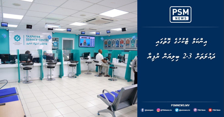 އާމްދަނީން ނަގާ ޓެކްސް ނުވަތަ އިންކަމް ޓެކުހުގެ ގޮތުގައި އަހަރުގެ ފުރަތަމަ 3 މަސްދުވަހު ދައުލަތަށް 2.3 ބިލިޔަން ރުފިޔާ ލިބިފައިވާކަމަށް މޯލްޑިވްސް އިންލޭންޑް ރެވެނިއު އޮޓޯރިޓީ، މީރާގެ ތަފާސްހިސާބުތަކުން ދައްކައިފިއެވެ. މިއީ މިދިޔަ އަހަރާއި އަޅާބަލާއިރު އިތުރު އަދަދެކެވެ.