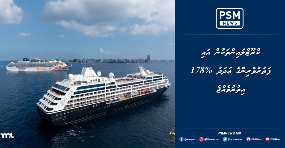 އަހަރުގެ މިހާތަނަށް ކްރޫޒްލައިންތަކުން ރާއްޖެއަށް އައި ފަތުރުވެރިންގެ އަދަދު %178 އިތުރުވެފައިވާކަމަށް ފަތުރުވެރިކަމާ ބެހޭ ވުޒާރާގެ ތަފާސްހިސާބުތަކުން ދައްކައިފިއެވެ.