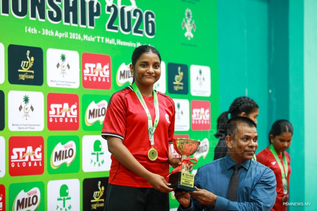 ރާއްޖެ ޖޫނިއާ ޓޭބަލް ޓެނިސް ޗެމްޕިއަންޝިޕް 2026 ގެ ސިންގަލްސް އަދި ޑަބަލްސް އިވެންޓުންތަކުން މުޙައްމަދު ހަލަފް ރާފިޢުއާއި ޢާއިޝަތު އަލްސާ ނާފިޒު ގިނަ އިވެންޓުތަކެއްގެ ޗެމްޕިއަންކަން ހޯދައިފިއެވެ.