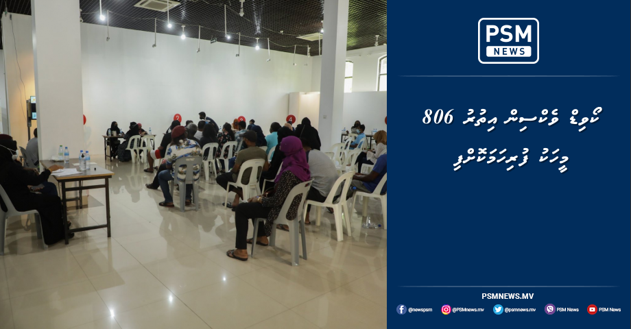 ކޯވިޑުން ރައްކާތެރިވުމަށް ޖަހާ ވެކްސިން މިއަދު 806 މީހަކު ފުރިހަމަކޮށްފިއެވެ. މިއާއެކު ރާއްޖޭގައި ވެކްސިން ފުރިހަމަކުރި މީހުންގެ ޢަދަދުވަނީ 185,671އަށް އަރާފައެވެ.