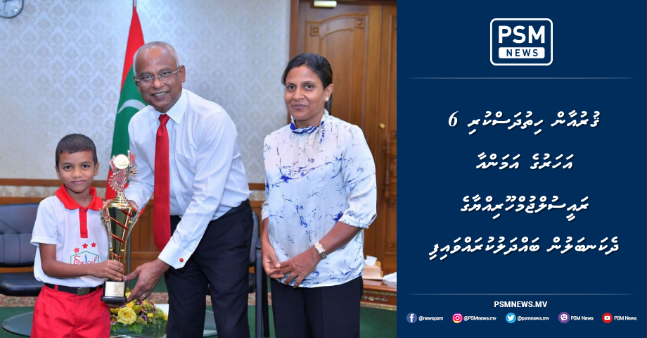 މިއަދު މެންދުރުފަހު ރައީސުލްޖުމްހޫރިއްޔާގެ އޮފީހުގައި ބޭއްވެވި ބައްދަލުކުރެއްވުމުގައި، ރައީސުލްޖުމްހޫރިއްޔާގެ ދެކަނބަލުން ވަނީ އަމަން އަޙްމަދު ޢާޠިފަށް ހޫނު މަރުޙަބާއެއް ވިދާޅުވެފައެވެ. މިހާ ޅަ އުމުރެއްގައި އަމަން، ކީރިތި ޤުރްއާން ހިތުދަސްކުރީތީ އެކަމަށް ތަޢުރީފް ކުރައްވައި، އެކަމާ ވަރަށް ބޮޑަށް އުފާފުޅު ކުރައްވާ ކަމަށްވެސް ރައީސުލްޖުމްހޫރިއްޔާ ވިދާޅުވިއެވެ. އަދި އަމަންގެ މައިންބަފައިން އެކަމަށްޓަކައި ކުރެއްވި މަސައްކަތްތައް ފާހަގަކުރައްވާ، އަމަންގެ މަންމަ، ލުބާނާ މުޙައްމަދަށާއި ބައްޕަ އަޙްމަދު އާޠިފަށްވެސް، ރައީސުލްޖުމްހޫރިއްޔާ ޝުކުރު އަދާކުރެއްވިއެވެ.