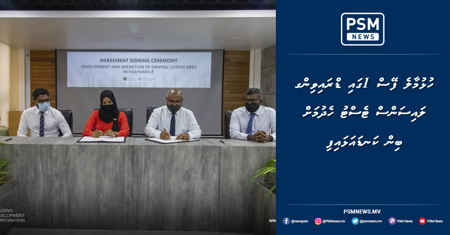 ހުޅުމާލޭ ފޭސް 1 ގައި ޑްރައިވިންގ ލައިސަންސް ނެގުމަށް ބޭނުންކުރާ ބިން ކަނޑައަޅައި އެކަމުގެ އެއްބަސްވުމުގައި މިއަދު ސޮއިކޮށްފިއެވެ.