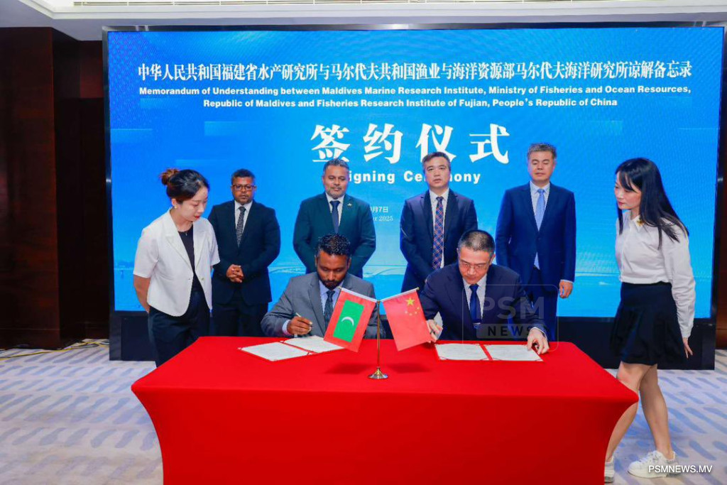 The Maldives Marine Research Institute (MMRI) and China's Fujian Fisheries Institute have entered into a Memorandum of Understanding (MoU) to boost the island nation's aquaculture sector.