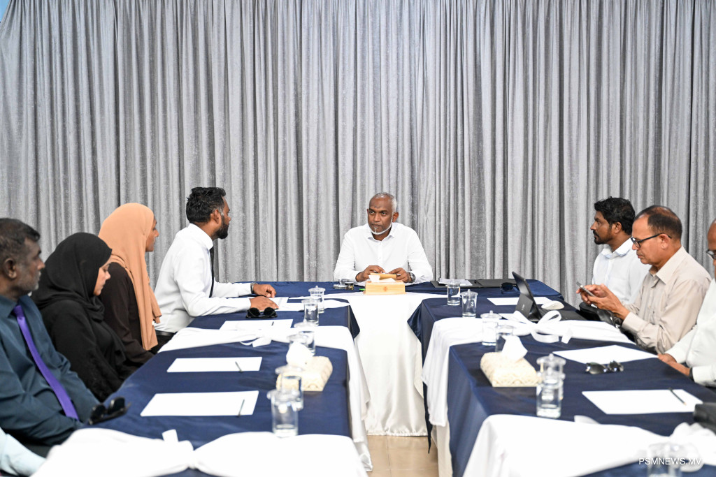 President Muizzu met with members of the Dhiffushi Island Council, the Women’s Development Committee, and institutional heads during his visit, where he also inaugurated key infrastructure and presided over the launch of several development initiatives.