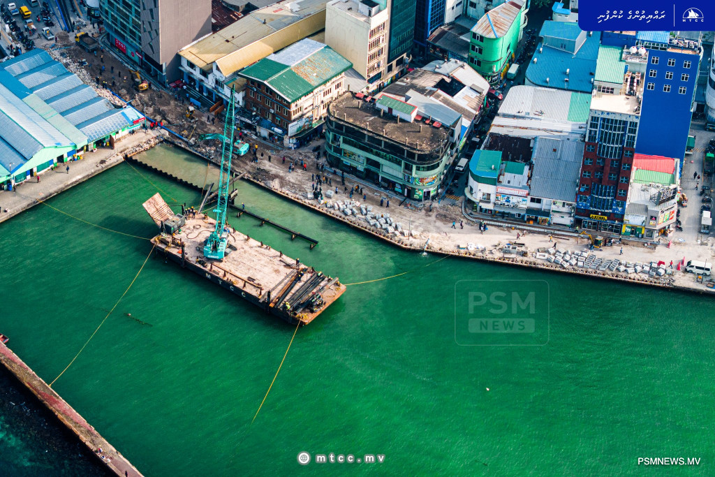 The construction covers a 250-metre section from the Local Market area to the North Harbour, forming part of a wider 1,088-metre stretch running from the Henveiru Ferry Terminal to the North Harbour. Phase one, covering 140 metres, has been completed, while work on phase two is ongoing.