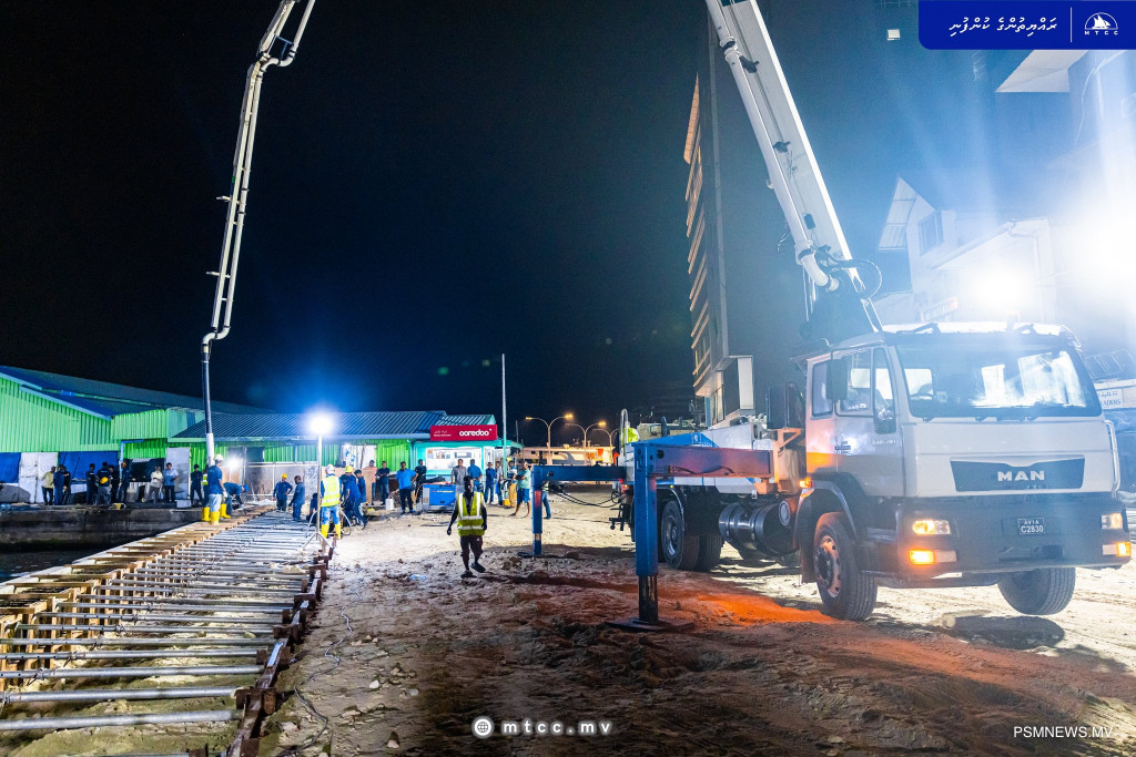 Maldives Transport and Contracting Company (MTCC) says it has completed concrete works for 55 meters of the quay wall under the Malé North Side Boduthakurufaanu Road Development Project.
