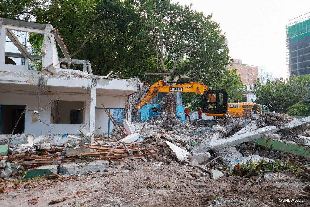 President Dr Mohamed Muizzu has announced the former Dharumavantha School building has been demolished to make way for a new building for Majeedhiya School.