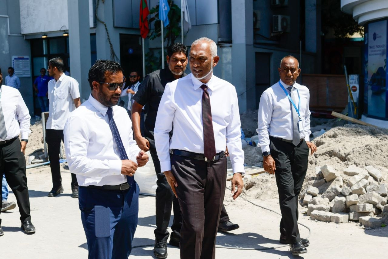 President Dr Mohamed Muizzu visited the site to inspect the progress of works on Boduthakurufaanu Magu. The visit was attended by Minister Muththalib and Chief Executive Officer of the Maldives Transport and Contracting Company (MTCC), Ahmed Saudee.