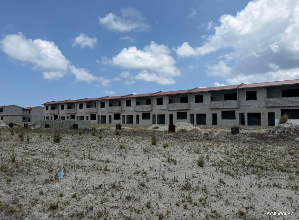 The separate 200-unit row housing development project in Thinadhoo began in 2022, with each house designed to include three bedrooms.