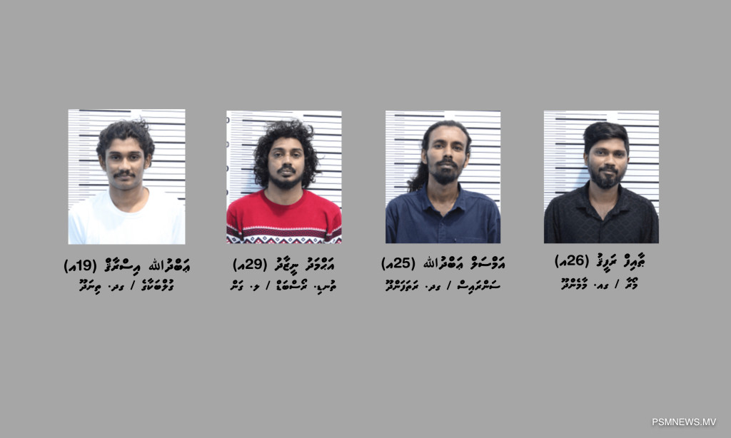 މި މައްސަލައާ ގުޅިގެން މި ހަތަރު މީހުންގެ ބަންދާމެދު ގޮތެއް ނިންމުމަށް ކޯޓަށް ހާޒިރުކުރުމުން ޝަރީއަތުން ގޮތެއް ނިމެންދެން ހަތަރު މީހުން ވެސް ބަންދުކުރުމަށް ވަނީ އަމުރުކޮށްފައެވެ.