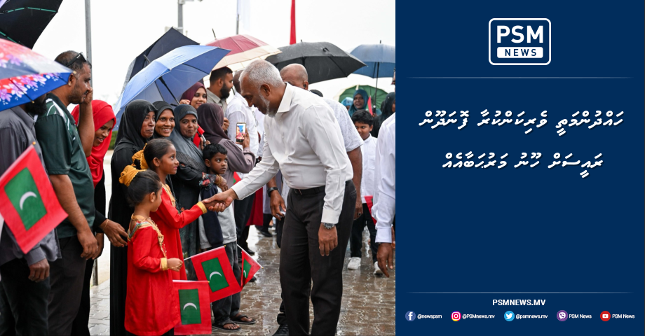 ލ. ފޮނަދުއަށް ރައީސުލްޖުމްހޫރިއްޔާ ވަޑައިގެންނެވުމުން އެރަށުގެ މުއައްސަސާތަކުގެ އިސްވެރިންނާއި މުވައްޒަފުންނާއި ރަށުގެ އެކި އުމުރުފުރާތަކުގެ މީހުންވަނީ އެމަނިކުފާނަށް ހޫނު މަރުޙާބާއެއް ދަންނަވާފައެވެ.