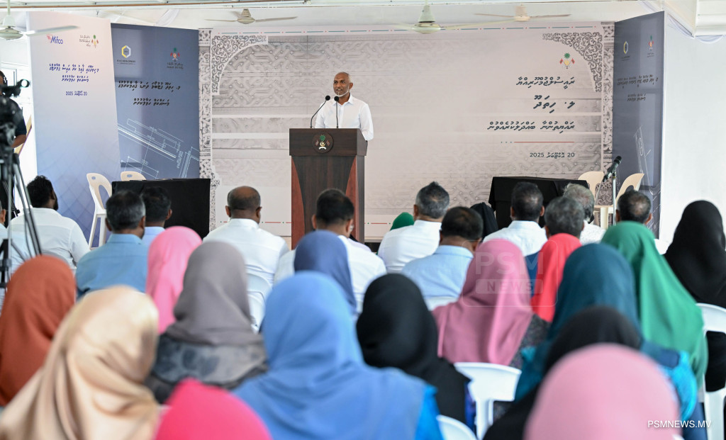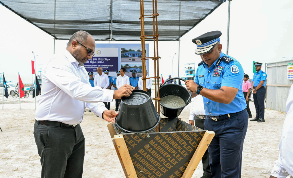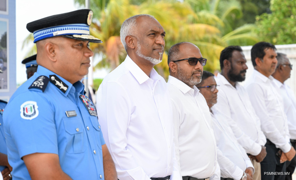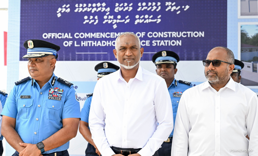 ލ. ހިތަދޫ ފުލުހުންގެ މަރުކަޒުގެ އަމަލީ މަސައްކަތް ފެށުމުގެ ރަސްމިއްޔާތުގައި ރައީސުލްޖުމްހޫރިއްޔާ ޑރ. މުޙައްމަދު މުޢިއްޒު ބައިވެރިވެވަޑައިގަންނަވަނީ / ފޮޓޯ - ރައީސް އޮފީސް