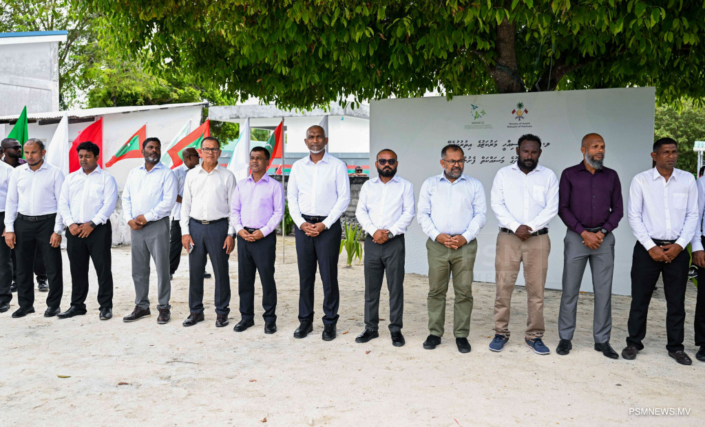 ލ. ހިތަދޫ ޞިއްޙީ މަރުކަޒުގެ އިތުރުކުރެވޭ އިމާރާތުގެ އަމަލީ މަސައްކަތް ފެށުމުގެ ރަސްމިއްޔާތުގައި ރައީސުލްޖުމްހޫރިއްޔާ ޑރ. މުޙައްމަދު މުޢިއްޒު ބައިވެރިވެވަޑައިގަންނަވަނީ / ފޮޓޯ - ރައީސް އޮފީސް