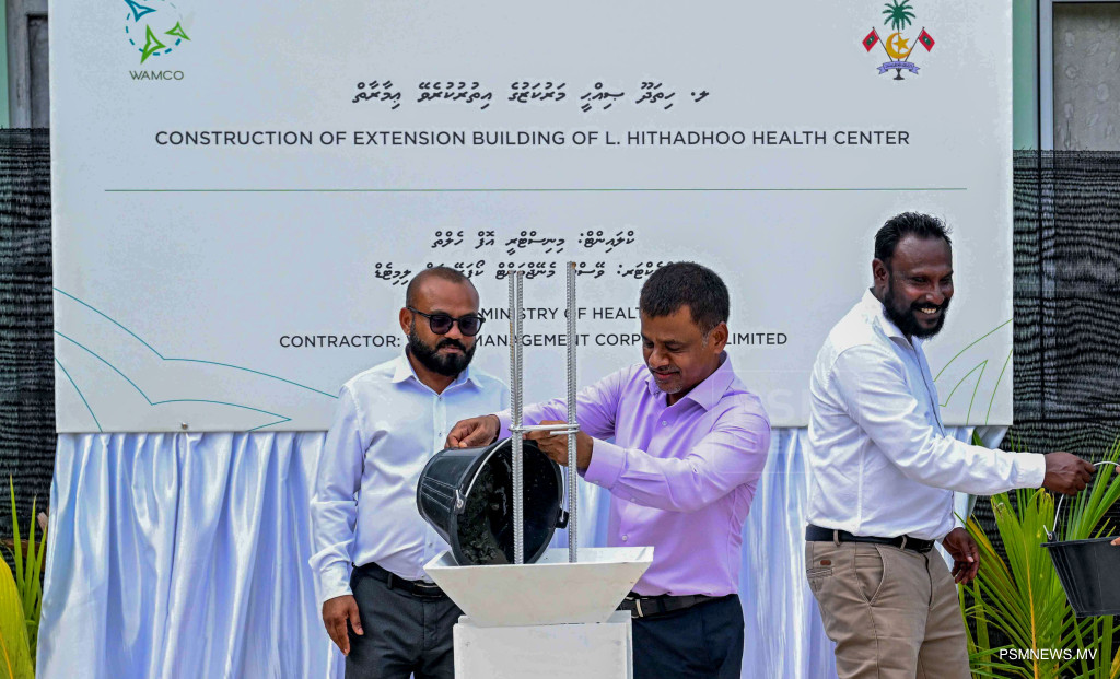 ލ. ހިތަދޫ ޞިއްޙީ މަރުކަޒުގެ އިތުރުކުރެވޭ އިމާރާތުގެ އަމަލީ މަސައްކަތް ޞިއްޙީ ވަޒީރު ޢަބްދުﷲ ނާޡިމް އިބްރާހީމް ފައްޓަވައިދެއްވަނީ / ފޮޓޯ - ރައީސް އޮފީސް