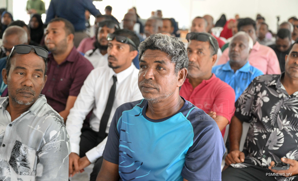 ރައީސުލްޖުމްހޫރިއްޔާ ޑރ. މުޙައްމަދު މުޢިއްޒު ލ. ހިތަދޫ ރައްޔިތުންނާއި ބައްދަލުކުރެއްވުމަށް ބޭއްވި ޖަލްސާގެ ތެރެއިން / ފޮޓޯ - ރައީސް އޮފީސް