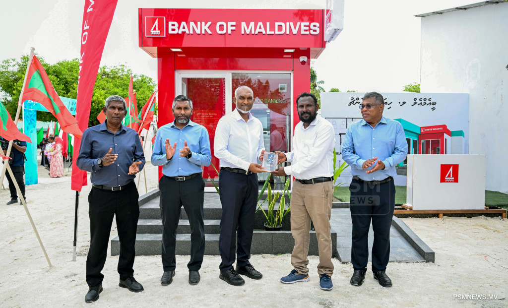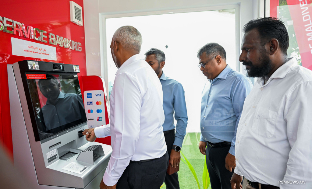 ލ. ހިތަދޫގައި ޤާއިމްކުރާ ބޭންކް އޮފް މޯލްޑިވްސްގެ އިސްލާމިކް ބްރާންޗުގެ ބިންގާ އަދި، އެރަށުގައި ބީއެމްއެލް އޭޓީއެމްގެ ޚިދުމަތް ރަސްމީކޮށް ފެށުމުގެ ރަސްމިއްޔާތުގައި ރައީސުލްޖުމްހޫރިއްޔާ ޑރ. މުޙައްމަދު މުޢިއްޒު ބައިވެރިވެވަޑައިގަންނަވަނީ / ފޮޓޯ - ރައީސް އޮފީސް