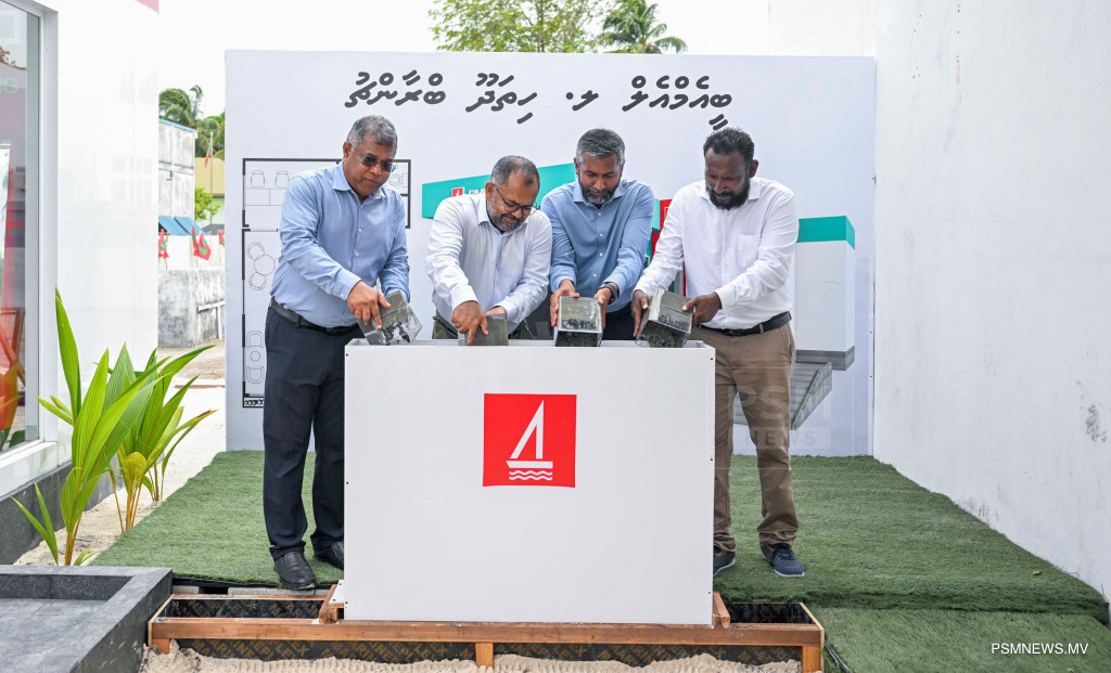 ލ. ހިތަދޫގައި ޤާއިމްކުރާ ބޭންކް އޮފް މޯލްޑިވްސްގެ އިސްލާމިކް ބްރާންޗުގެ ބިންގާ މާލީ ކަންކަމާއި ތަރައްޤީގެ ރޭވުންތެރިކަމާބެހޭ ވަޒީރު މޫސާ ޒަމީރު، ބީއެމްއެލްގެ ޗެއަރޕާސަން އަޙްމަދު ޢަލީ ޙަބީބު، ބީއެމްއެލްގެ ސީއީއޯ އަދި މެނޭޖިން ޑިރެކްޓަރ މުޙައްމަދު ޝަރީފް، އަދި ލ. ހިތަދޫ ކައުންސިލްގެ ރައީސް އަޅުއްވައިދެއްވަނީ / ފޮޓޯ - ރައީސް އޮފީސް