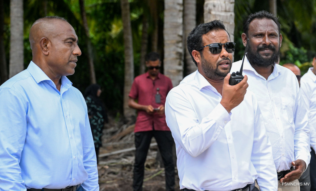 ލ. ހިތަދޫ އާއި ލ. ކުނަހަންދޫ ކޯޒްވޭއަކުން ގުޅުވާލުމުގެ އަމަލީ މަސައްކަތް ގެދޮރުވެރިކަމާއި ބިނާރާ ބެހޭ ވަޒީރު ޑރ. ޢަބްދުﷲ މުއްޠަލިބު ފައްޓަވައިދެއްވަނީ / ފޮޓޯ - ރައީސް އޮފީސް