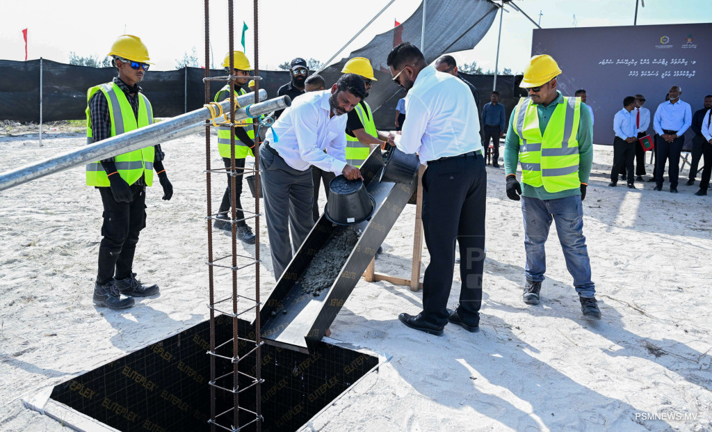 ޅ. ހިންނަވަރުގެ ކައުންސިލް އިދާރާގެ އައު އިމާރާތުގެ އަމަލީ މަސައްކަތް ސިޓީތަކާއި އިދާރީ ދާއިރާތައް ހިންގުމާއި އާންމު މަސައްކަތާބެހޭ ވަޒީރު އާދަމް ޝަރީފު ޢުމަރު ފަށްޓަވައިދެއްވަނީ / ފޮޓޯ - ރައީސް އޮފީސް