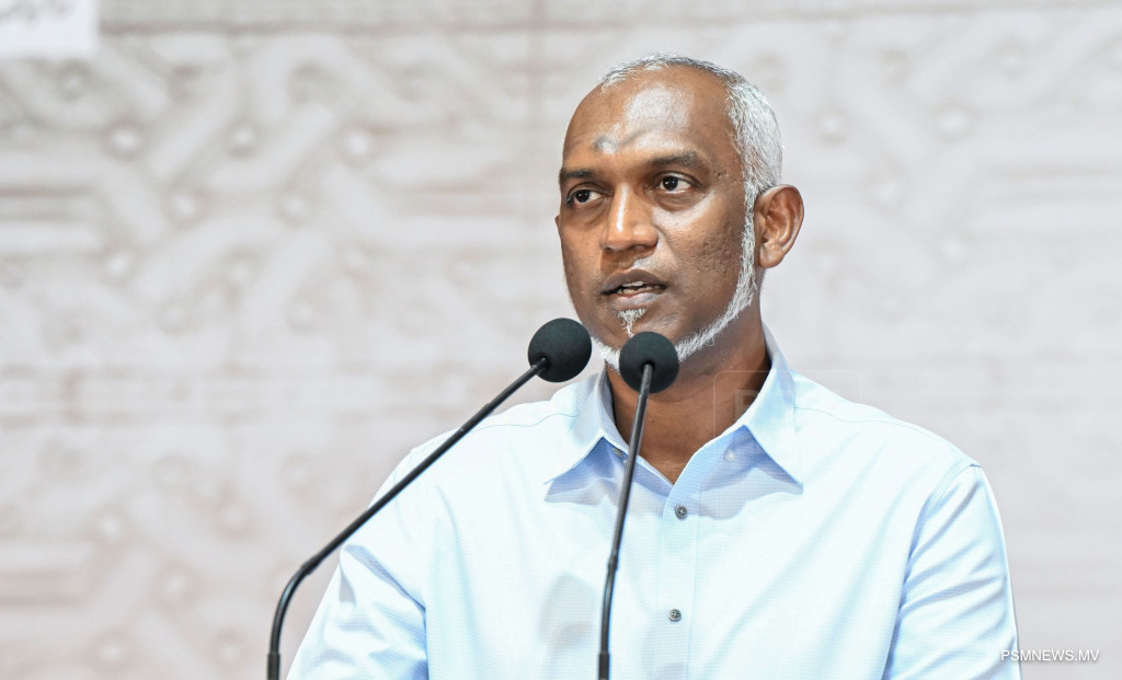 ރައީސުލްޖުމްހޫރިއްޔާ ޑރ. މުޙައްމަދު މުޢިއްޒު ޅ.ހިންނަވަރު ރައްޔިތުންނާއި ބައްދަލުކުރެއްވުމަށް ބޭއްވި ޖަލްސާގައި ވާހަކަފުޅު ދައްކަވަނީ / ފޮޓޯ - ރައީސް އޮފީސް