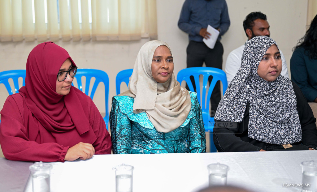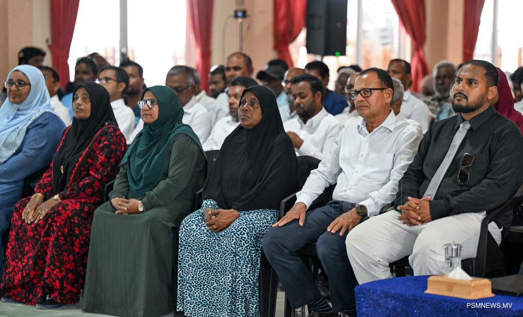ރައީސުލްޖުމްހޫރިއްޔާ ޑރ. މުޙައްމަދު މުޢިއްޒު ޅ. ހިންނަވަރު ކައުންސިލާއި، އ.ތ.މ ކޮމިޓީ އަދި ރަށުގެ މުއައްސަސާތަކުގެ އިސްވެރިންނާއި ބައްދަލުކުރެއްވުމުގެ ތެރެއިން / ފޮޓޯ - ރައީސް އޮފީސް