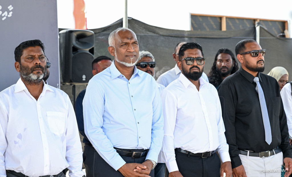 . ހިންނަވަރު ފިޓްނަސް އެންޑް ރެކްރިއޭޝަން ސެންޓަރުގެ އަމަލީ މަސައްކަތް ފެށުމުގެ ރަސްމިއްޔާތުގައި ރައީސުލްޖުމްހޫރިއްޔާ ޑރ. މުޙައްމަދު މުޢިއްޒު ބައިވެރިވެވަޑައިގަންނަވަނީ / ފޮޓޯ - ރައީސް އޮފީސް