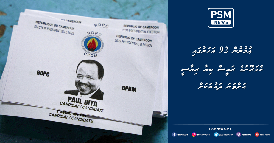 ކެމަރޫންގެ ރައީސް ޕޯލް ބިޔާ އަނެއްކާ ވެސް ވެރިކަމުގެ އިތުރު ދައުރަކަށް ހޮވިވަޑައިގެންފިއެވެ. އަށްވަނަ ދައުރަކަށް ހޮވަވަޑައިގެންފައިވާ އުމުރުން 92 އަހަރުގެ ބިޔާއަކީ މިހާރު ވެސް ދުނިޔޭގެ ރައީސުންގެ ތެރެއިން އެންމެ ދޮށީ ބޭފުޅެވެ.