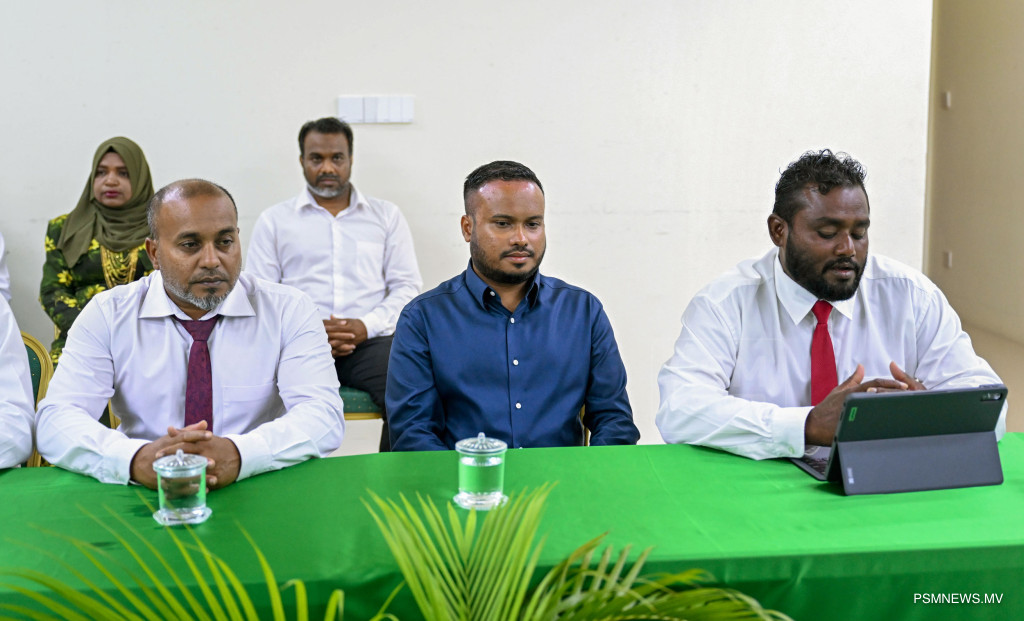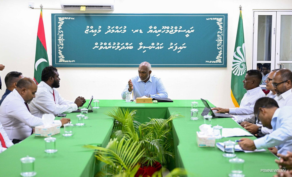 ރައީސުލްޖުމްހޫރިއްޔާ ޑރ. މުޙައްމަދު މުޢިއްޒު ޅ. ނައިފަރު ކައުންސިލާއި، އ.ތ.މ ކޮމިޓީ އަދި ރަށުގެ މުއައްސަސާތަކުގެ އިސްވެރިންނާއި ބައްދަލުކުރެއްވުމުގެ ތެރެއިން / ފޮޓޯ - ރައީސް އޮފީސް