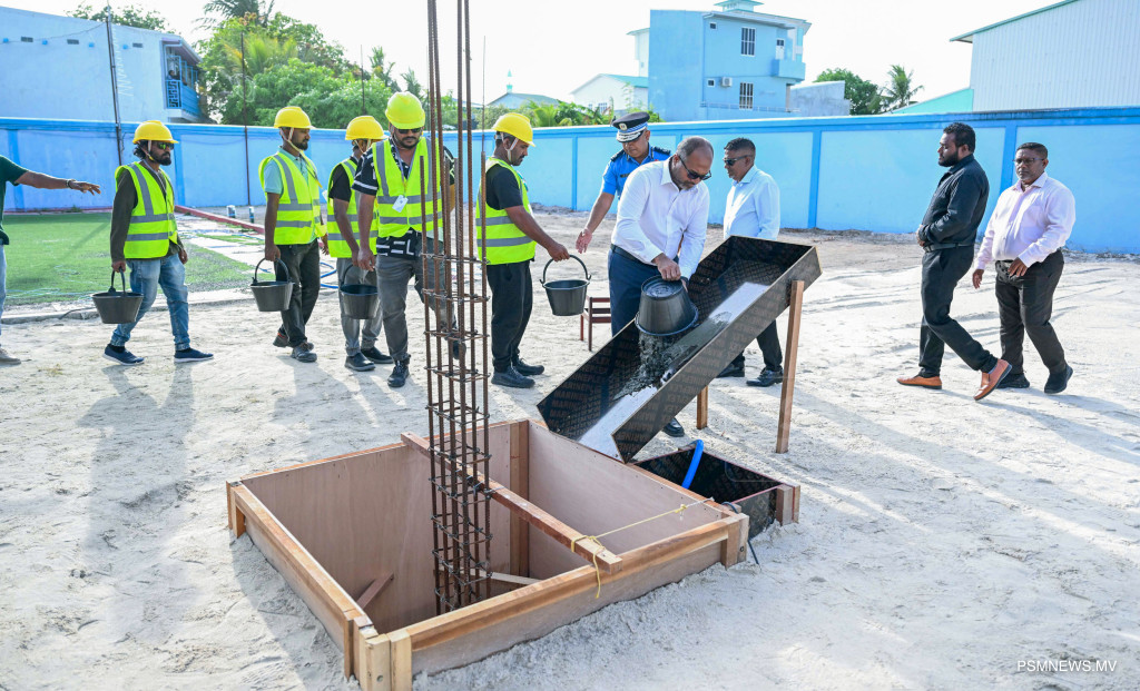 ޅ. ނައިފަރުގައި ފުލުހުންގެ އެކޮމޮޑޭޝަން ބްލޮކް އިމާރާތްކުރުމުގެ އަމަލީ މަސައްކަތް ދާޚިލީ ސަލާމަތާއި ފަންނިއްޔާތާއި ބެހޭ ވަޒީރު ޢަލީ އިޙްސާން ފައްޓަވައި ދެއްވަނީ / ފޮޓޯ - ރައީސް އޮފީސް