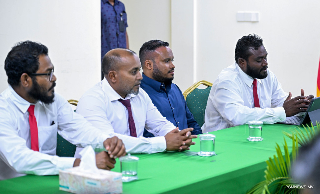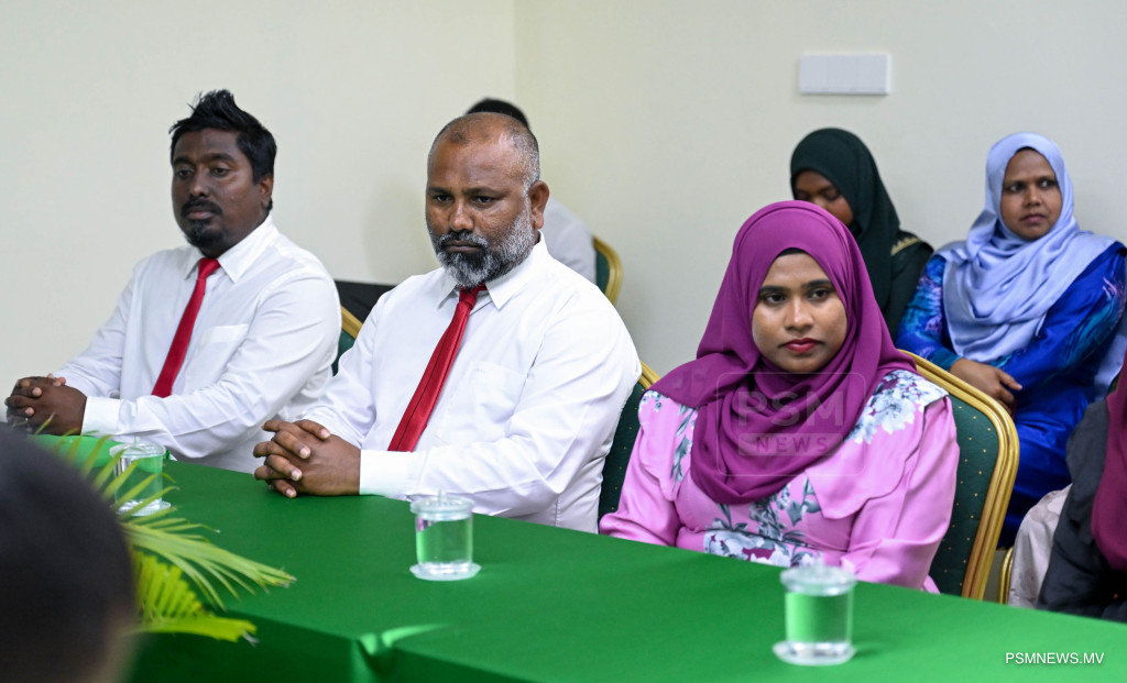 ރައީސުލްޖުމްހޫރިއްޔާ ޑރ. މުޙައްމަދު މުޢިއްޒު ޅ. ނައިފަރު ކައުންސިލާއި، އ.ތ.މ ކޮމިޓީ އަދި ރަށުގެ މުއައްސަސާތަކުގެ އިސްވެރިންނާއި ބައްދަލުކުރެއްވުން / ފޮޓޯ - ރައީސް އޮފީސް