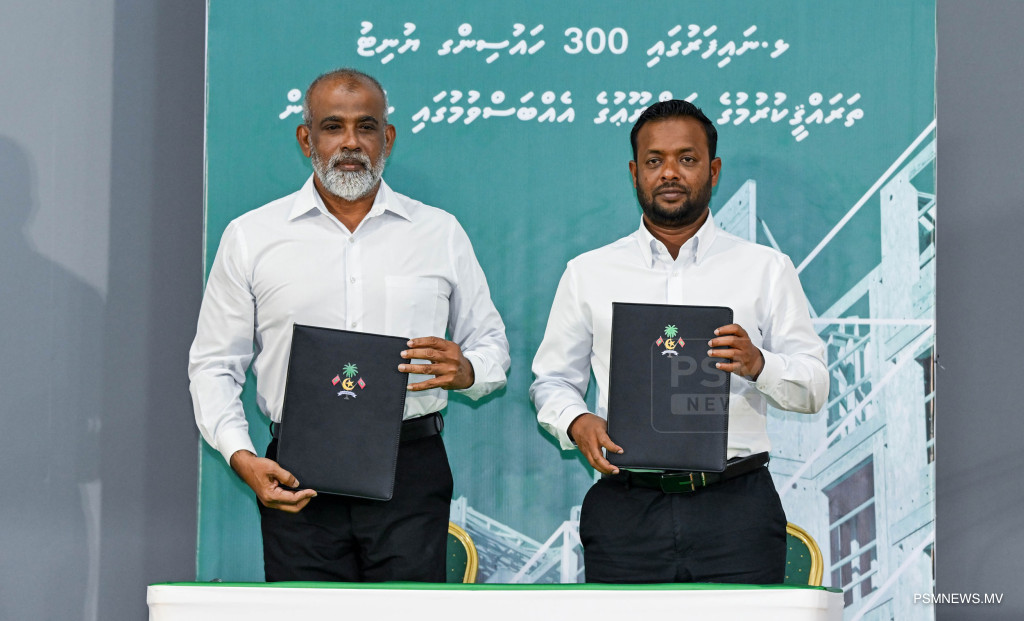 ޅ. ނައިފަރުގައި 300 ހައުސިން ޔުނިޓް ތަރައްޤީކުރުމުގެ އެއްބަސްވުމުގައި އިމާރާތްކުރުމާއި ބިނާރާ ބެހޭ ވަޒީރު، ޑރ. އަބްދުﷲ މުއްތަލިބު އަދި ހައުސިން ޑިވެލޮޕްމެންޓް ކޯޕަރޭޝަންގެ މެނޭޖިން ޑިރެކްޓަރު، އަލީ ޒުހައިރު
