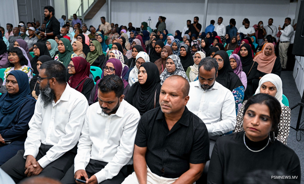 ރައީސުލްޖުމްހޫރިއްޔާ ޑރ. މުޙައްމަދު މުޢިއްޒު ޅ. ނައިފަރު ރައްޔިތުންނާއި ބައްދަލުކުރެއްވުމަށް ބޭއްވި ޖަލްސާގެ ތެރެއިން / ފޮޓޯ - ރައީސް އޮފީސް