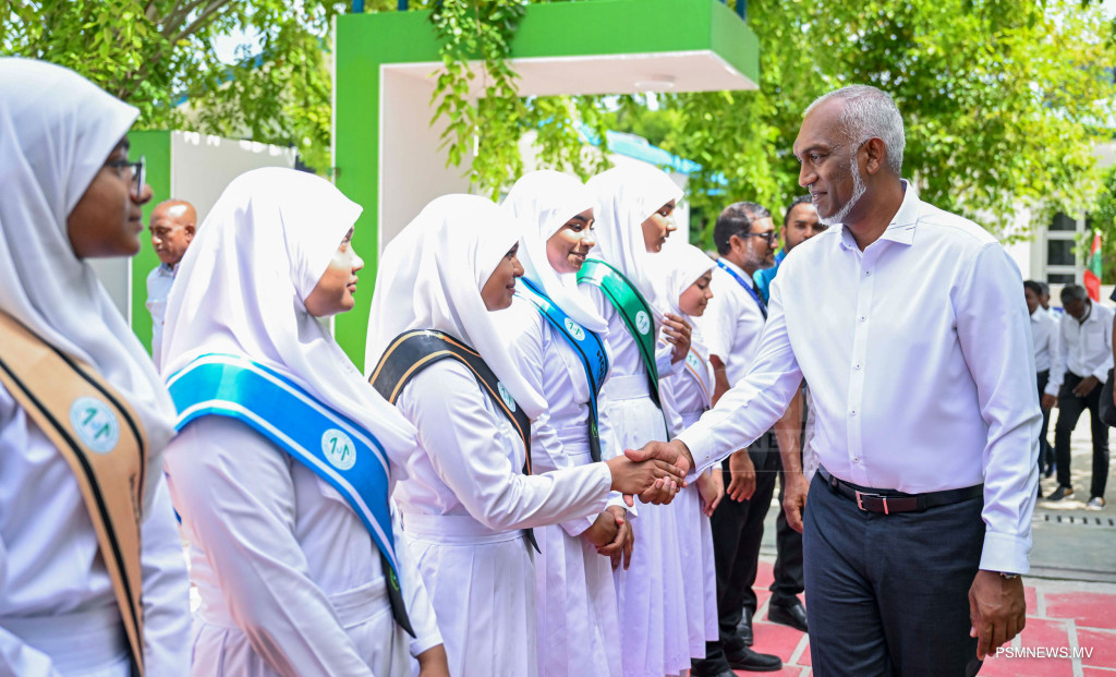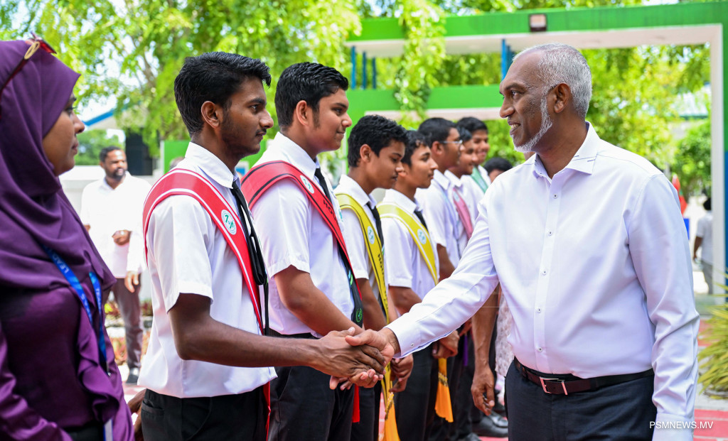 ކ. ކާށިދޫ ސްކޫލް ދަރިވަރުންނާއި ރައީސުލްޖުމްހޫރިއްޔާ ޑރ. މުޙައްމަދު މުޢިއްޒު ސަލާމްކުރައްވަނީ / ފޮޓޯ - ރައީސް އޮފީސް