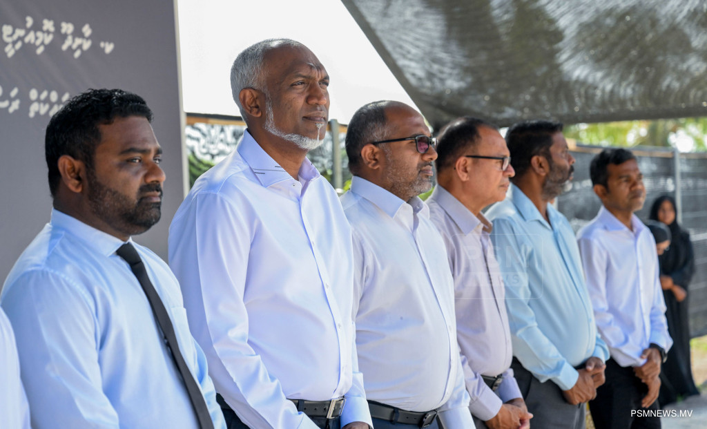 ކ. ކާށިދޫގައި ޤާއިމުކުރާ ކޮމިއުނިޓީ ރިހެބިލިޓޭޝަން ސެންޓަރުގެ އަމަލީ މަސައްކަތް ފެށުމުގެ ރަސްމިއްޔާތުގައި ރައީސުލްޖުމްހޫރިއްޔާ ޑރ. މުޙައްމަދު މުޢިއްޒު ބައިވެރިވެވަޑައިގަންނަވަނީ / ފޮޓޯ - ރައީސް އޮފީސް