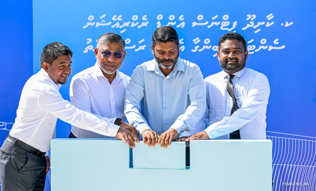 ކ. ކާށިދޫގައި އިމާރާތްކުރާ ފިޓްނަސް އެންޑް ރެކްރިއޭޝަން ސެންޓަރުގެ ބިންގާ ކުޅިވަރާއި ހަށިހެޔޮކަމާ ބެހޭ ވަޒީރު ޢަބްދުﷲ ރާފިޢު އަދި އެމްއޭސީއެލްގެ މެނޭޖިންގ ޑިރެކްޓަރ އިބްރާހިމް ޝަރީފް މުހައްމަދު އަޅުއްވައިދެއްވަނީ / ފޮޓޯ - ރައީސް އޮފީސް