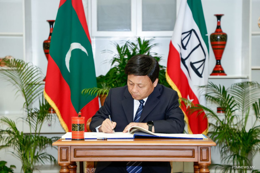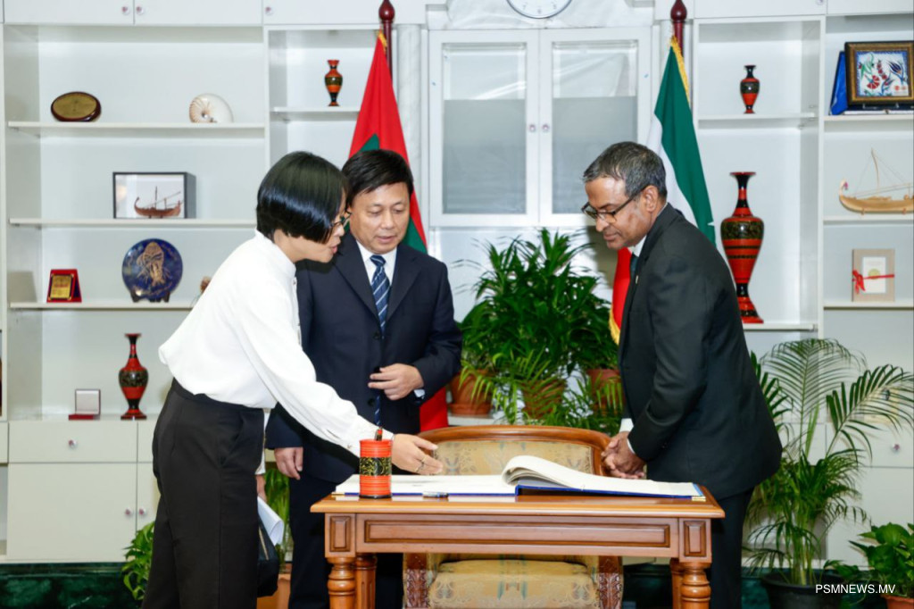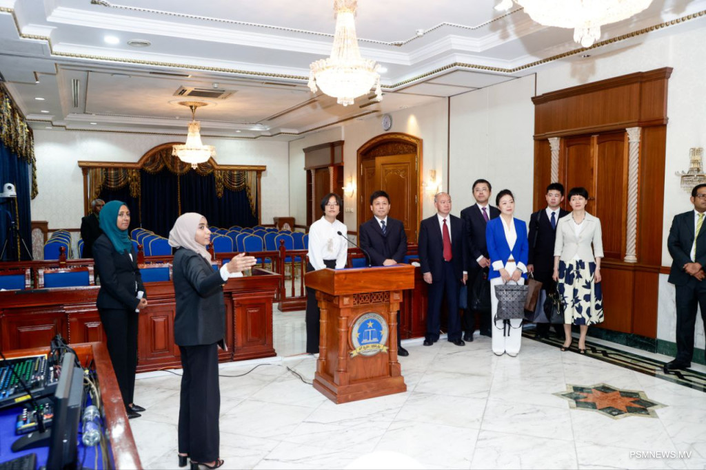 29 އޮކްޓޯބަރު، 2029: ޕްރޮސެކިއުޓަރ ޖެނެރަލްގެ ދަޢުވަތަކަށް ރާއްޖެ ޒިޔާރަތް ކުރައްވަމުން ގެންދަވާ ޗައިނާގެ ސުޕްރީމް ޕީޕަލްސް ޕްރޮކިއުޓޮރޭޓްގެ އިސް ވެރިންގެ ދަތުރުފުޅުގައި ދިވެހި ރާއްޖޭގެ ސުޕްރީމް ކޯޓަށް ކުރެއްވި ޒިޔާރަތުގެ ތެރެއިން. ފޮޓޯ: އަލީ ނަސީރު