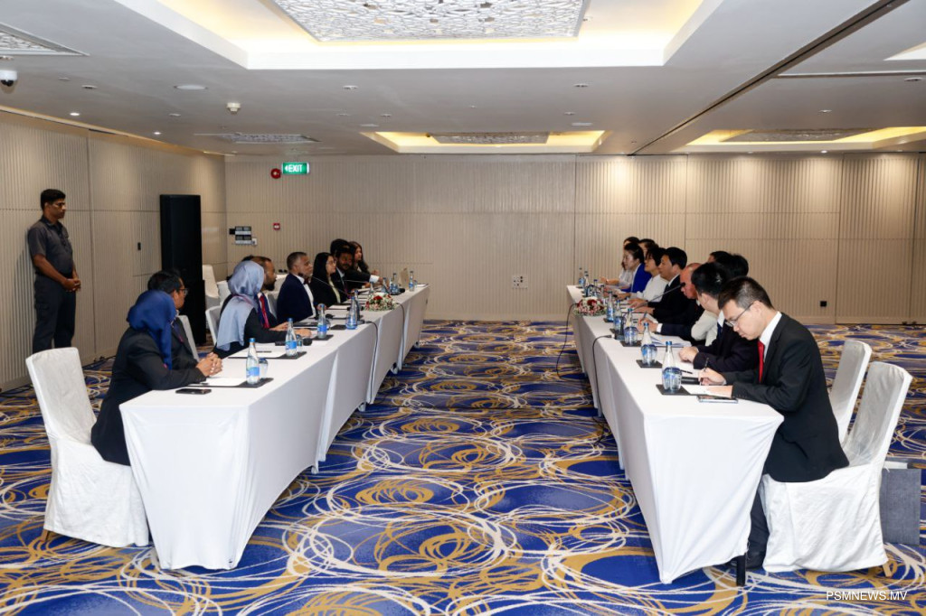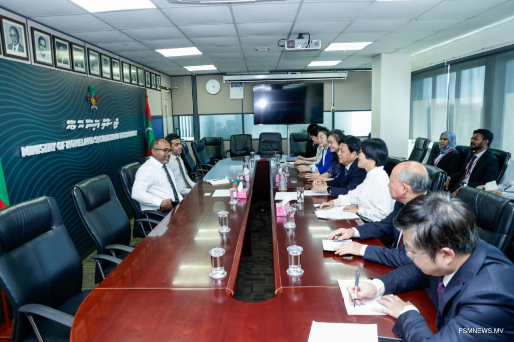 29 އޮކްޓޯބަރު، 2029: ޕްރޮސެކިއުޓަރ ޖެނެރަލްގެ ދަޢުވަތަކަށް ރާއްޖެ ޒިޔާރަތް ކުރައްވަމުން ގެންދަވާ ޗައިނާގެ ސުޕްރީމް ޕީޕަލްސް ޕްރޮކިއުޓޮރޭޓްގެ އިސް ވެރިންގެ ދަތުރުފުޅުގައި މިނިސްޓަރ އޮފް ހޯމްލޭންޑް ސެކިއުރިޓީ އެންޑް ޓެކްނޮލޮޖީއާ އެކު ކުރިއަށް ދިޔަ ބައްދަލުވުމުގެ ތެރެއިން. ފޮޓޯ: އަލީ ނަސީރު