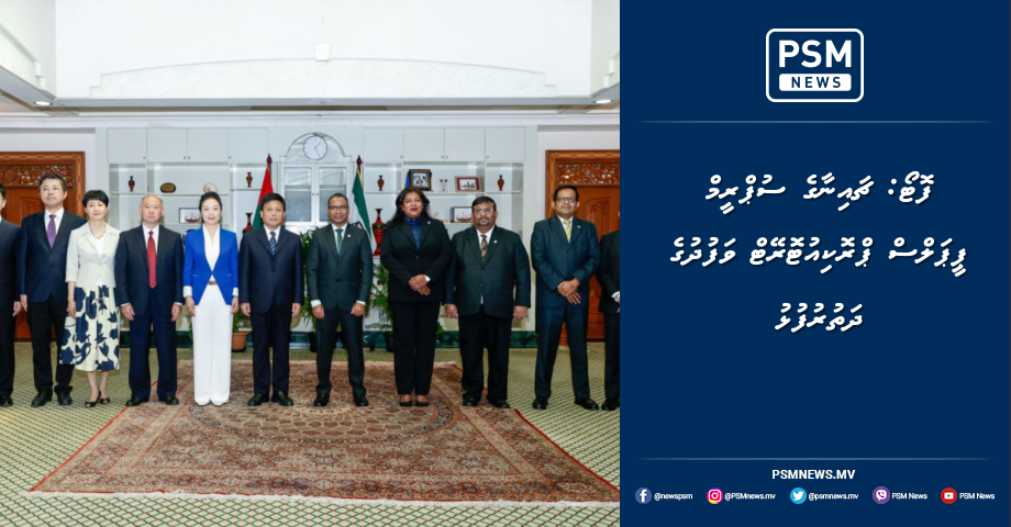 29 އޮކްޓޯބަރު، 2029: ޕްރޮސެކިއުޓަރ ޖެނެރަލްގެ ދަޢުވަތަކަށް ރާއްޖެ ޒިޔާރަތް ކުރައްވަމުން ގެންދަވާ ޗައިނާގެ ސުޕްރީމް ޕީޕަލްސް ޕްރޮކިއުޓޮރޭޓްގެ އިސް ވެރިންގެ ދަތުރުފުޅުގެ ތެރެއިން ޕީޖީ އޮފީހާއި އެކު ކުރިއަށް ދިޔަ ބައްދަލުވުމުގެ ތެރެއިން. ފޮޓޯ: އަލީ ނަސީރު