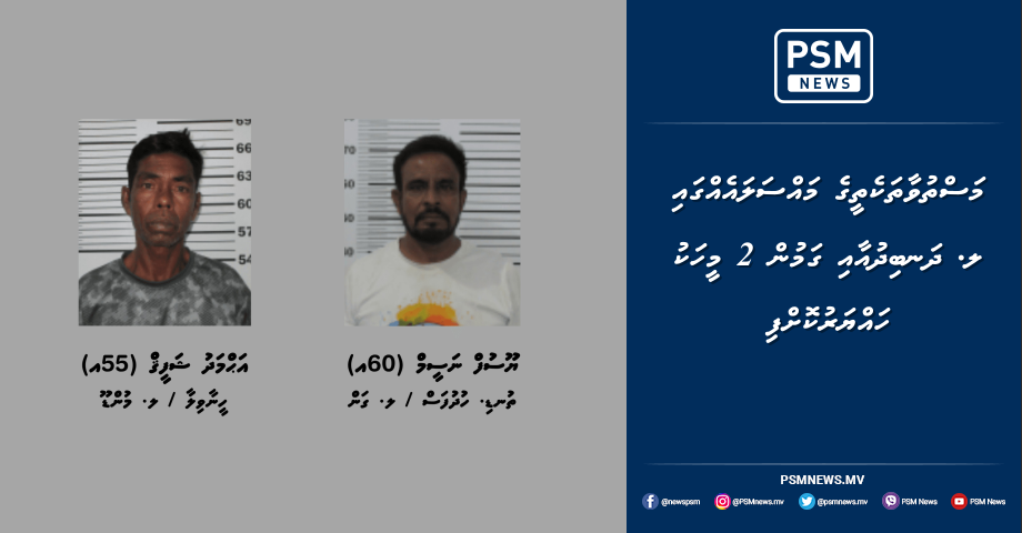 މި މައްސަލާގައި ހައްޔަރުކޮށްފައިވަނީ، ލ. ގަން، ހުދުފުސް އުމުރުން 60 އަހަރުގެ ޔޫސުފް ނަސީމާއި، ލ. މުންޑޫ، ހީނާވިލާ 55 އަހަރުގެ އަޙުމަދު ޝަފީޤެވެ.