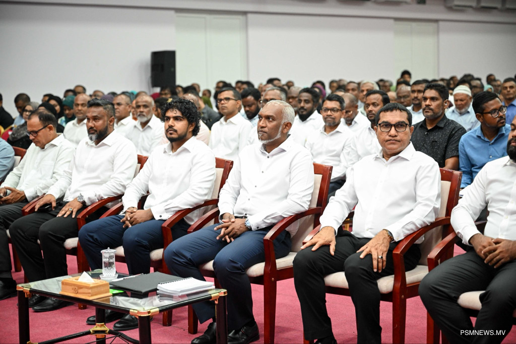 އައްޑޫ ސިޓީގެ ގުޅިފައިވާ ރަށްރަށުގެ ރައްޔިތުންނާ ބައްދަކުރެއްވުމަށް ބޭއްވި ޖަލްސާގައި ރައީސުލްޖުމްހޫރިއްޔާ ޑރ. މުޙައްމަދު މުޢިއްޒު ވަނީ އެސިޓީގެ ތަރައްޤީއަށް ކުރިއަށްގެންދާ މަޝްރޫޢުތަކުގެ ތަފްސީލް ހިއްސާކުރައްވާފައެވެ.