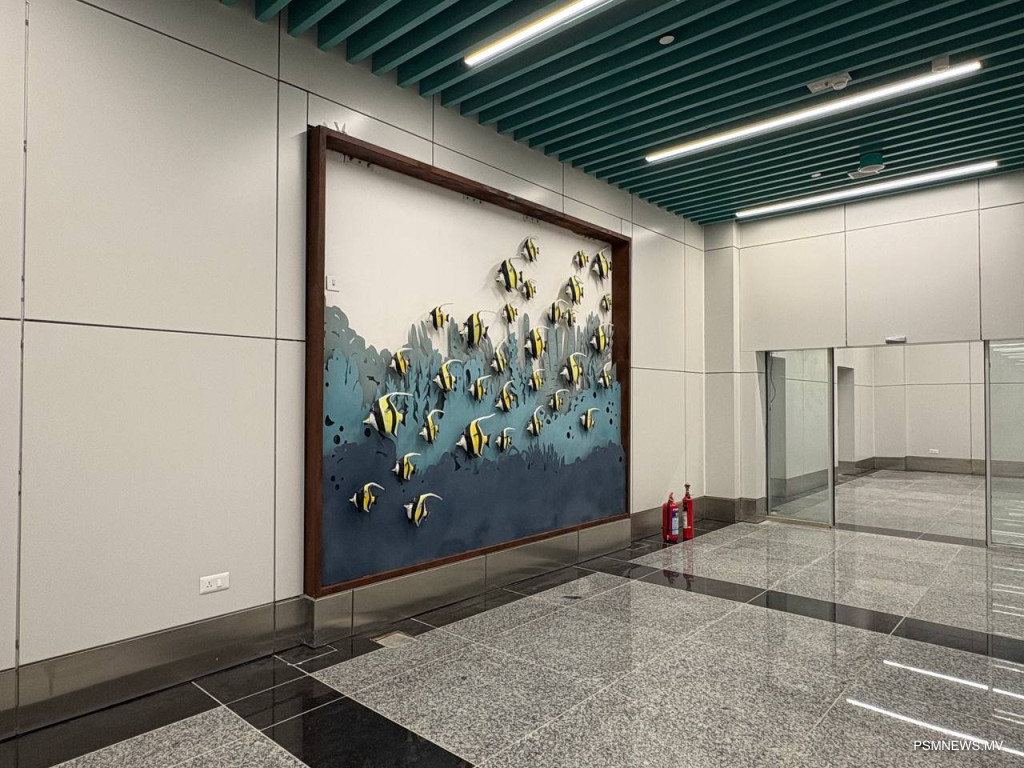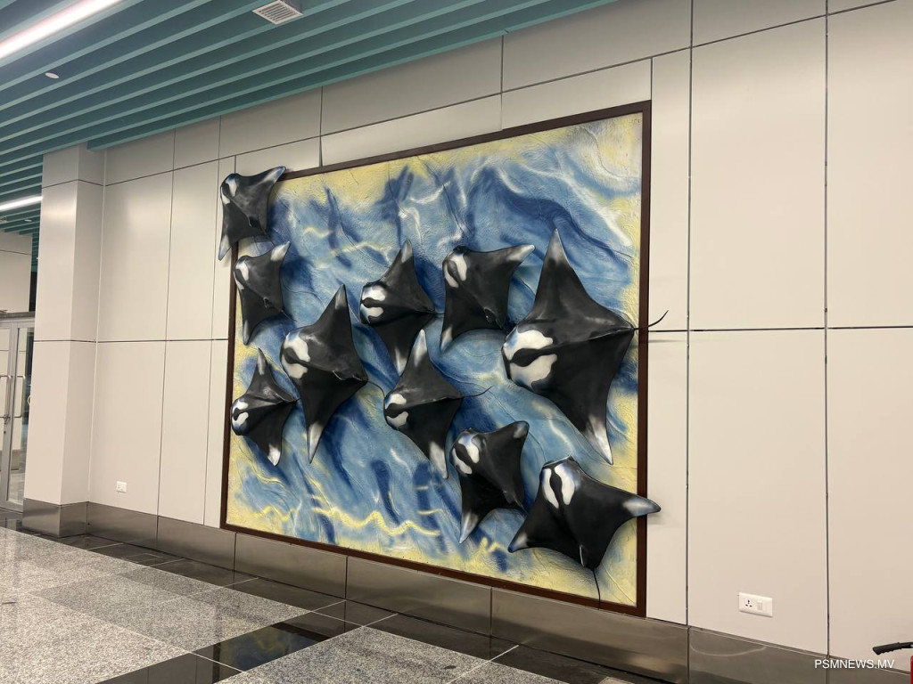 އެއަރޕޯޓުގެ އެރައިވަލް ހޯލަށް ވަންނަ މީހަކަށް އެންމެ ފުރަތަމަވެސް ފެނިގެންދާނީ، ދިވެހި ކަނޑުތަކުގެ ރީތިކަމާއި ފުރިހަމަކަން ދައްކުވައިދޭ، މަންތާތަކެއް ނުވަތަ މޫދު މަޑިތަކެއް ހިމެނޭ ތިންޑީ (3D) ކުރެހުމެކެވެ. މި ކުރެހުމުން ރާއްޖޭގެ ކަނޑުއަޑީގެ ފޮރުވިފައިވާ ރީތިކަމާއި، މުރަކައިގެ މާހައުލުގައި މަޑުމަޑުން ދަތުރުކުރާ މި ދިރުންތަކުގެ ހިތްގައިމުކަން ވަރަށް ފުރިހަމައަށް ސިފަކޮށްދެއެވެ.