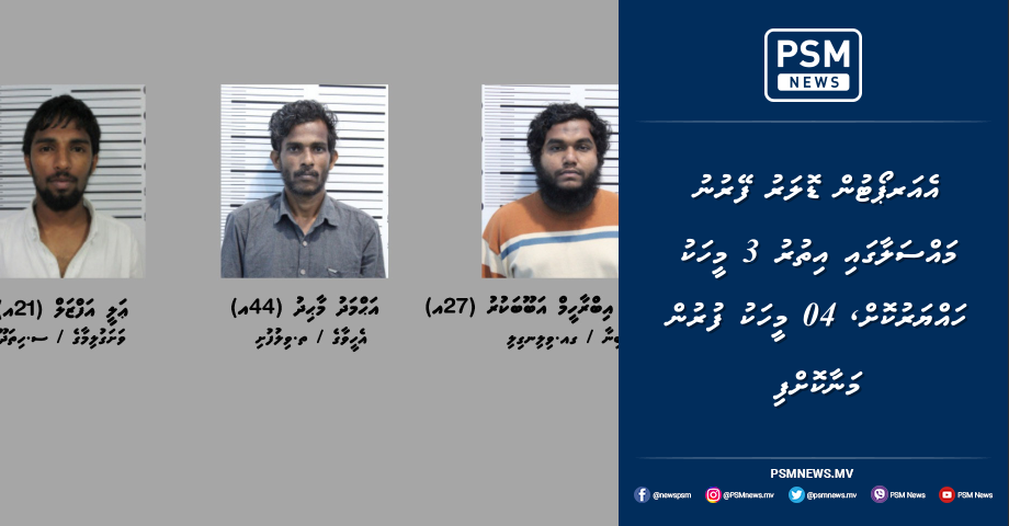 މިމައްސަލައިގައި ހައްޔަރުކުރި މީހުންގެ ތެރެއިން ޢަބްދުލްއައްވަލް އިބްރާހީމް އަބޫބަކުރާއި، އަޙްމަދު މާޙިދު އަދި އަލީ އަފްޒަލްގެ ބަންދާމެދު ގޮތެއް ނިންމުމަށް ކޯޓަށް ހާޒިރު ކުރުމުން، ޝަރީއަތް ނިމެންދެން ބަންދު ކުރުމަށް ވަނީ އަމުރުކޮށްފައެވެ. އަދި ޢަލީ އަފްޒަލްގެ ބަންދާމެދު ގޮތެއް ނިންމުމަށް ކޯޓަށް ހާޒިރު ކުރުމުން، ފުރަތަމަ 3 ދުވަހަށް ބަންދުކުރުމަށް އަމުރު ކުރުމަށްފަހު ދެވަނަ ފަހަރަށް ކޯޓަށް ހާޒިރު ކުރުމުން ޝަރީއަތް ނިމެންދެން ބަންދު ކުރުމަށް އަމުރުކޮށްފައިވާ ކަމަށްވެސް ފުލުހުން ވިދާޅުވިއެވެ.
