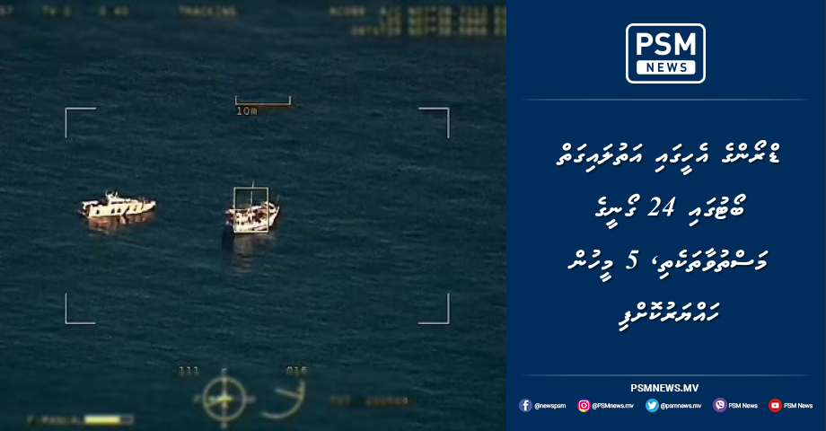 ޑްރޯން ބޭނުންކޮށްގެން އެމްއެންޑީއެފުން ހިންގި ސަރވެއިލަންސް އޮޕަރޭޝަނެއްގައި ގިނަ އަދަދެއްގެ މަސްތުވާތަކެއްޗާއެކު އަތުލައިގަތް ސްރީލަންކާގެ މަސްބޯޓުގައި ތިބި 5 މީހުން ހައްޔަރުކޮށްފައިވާކަމަށް ފުލުހުން ވިދާޅުވެއްޖެއެވެ.