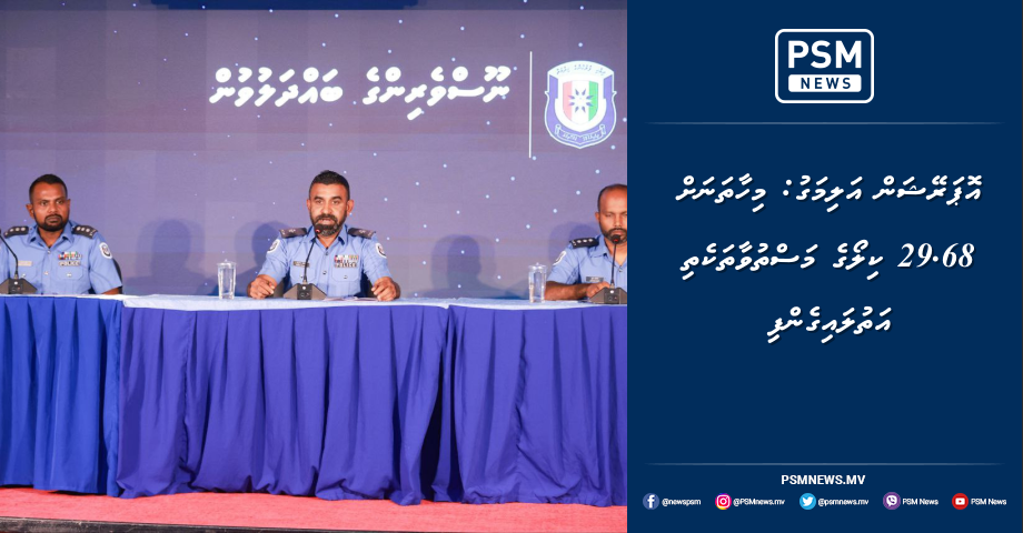 މަސްތުވާތަކެއްޗާ ދެކޮޅަށް ފުލުހުން ކުރިއަށްގެންދާ "އޮޕަރޭޝަން އަލިމަގު" ގައި މިހާތަނަށް 29.68 ކިލޯގެ މަސްތުވާތަކެތި އަތުލައިގެންފައިވާ ކަމަށް ދިވެހި ފުލުހުންގެ ޚިދުމަތުން ވިދާޅުވެއްޖެއެވެ.