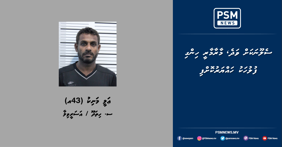 މި މައްސަލައާ ގުޅިގެން ހައްޔަރުކޮށްފައިވަނީ، ސ. ހިތަދޫ / އަސަރީވިލާ، ޢަލީ މަނިކު (43އ)އެވެ. އޭނާއަކީ، ފުލުހެއް ކަމަށާއި އޭނާގެ މައްޗަށް ތުހުމަތު ކުރެވުނު ޖިނާޢީ މައްސަލާގައި ހައްޔަރު ކުރުމާއި ގުޅިގެން އިއްޔެއިން ފެށިގެން މުސާރަ ނުލިބޭ ގޮތަށް ސަސްޕެންޑް ކޮށްފައިވާ ކަމަށްވެސް ފުލުހުންގެ ޚިދުމަތުން ވިދާޅުވިއެވެ.