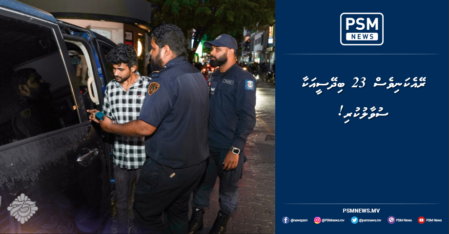 އެގޮތުން ބިދޭސީން ޗެކްކުރުމަށް ފުލުހުން ކުރަމުންދާ މަސައްކަތުގެ ތެރެއިން ރޭ އެކަނިވެސް މާލެއިން 23 ބިދޭސީއަކު ހުއްޓުވައި ސުވާލުކޮށް، ގަވާއިދާ ހިލާފަށް އުޅެމުންދިޔަ ބިދޭސީއަކު އިމިގްރޭޝަނާ ހަވާލުކުރުމުގެ މަސައްކަތް ކުރަމުންދާކަމަށް ދިވެހި ފުލުހުންގެ ޚިދުމަތުން ވިދާޅުވެއެވެ.