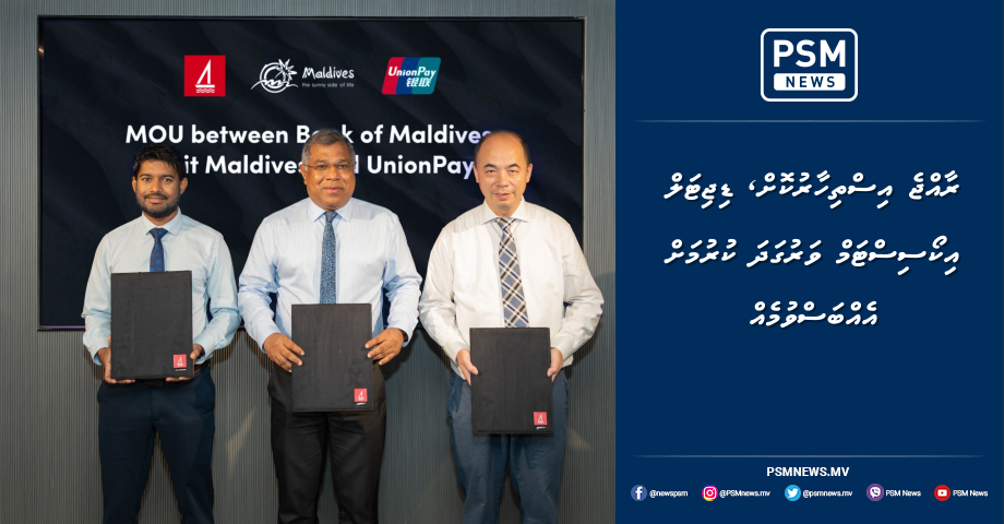 ބޭންކް އޮފް މޯލްޑިވްސް (ބީއެމްއެލް) އިން ޔޫނިއަންޕޭ އަދި ވިޒިޓް މޯލްޑިވްސް ކޯޕަރޭޝަންއާއެކު ރާއްޖޭގެ ފަތުރުވެރިކަން އިސްތިހާރު ކުރުމަށް ކުރަމުންދާ މަސައްކަތް އިތުރަށް ފުޅާކޮށް، ރާއްޖޭގެ ޑިޖިޓަލް ޕޭމަންޓް ޚިދުމަތްތައް ހަރުދަނާ ކުރުމަށް އެއްބަސްވުމެއްގައި ސޮއިކޮށްފިއެވެ.