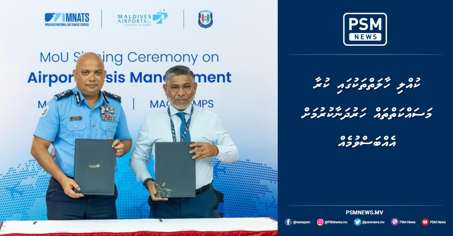 ވެލާނާ އިންޓަރނޭޝަނަލް އެއަރޕޯޓް (ވީއައިއޭ)ގައި ދިމާވެދާނެ ކުއްލި ހާލަތްތަކުގައި ގުޅިގެން މަސައްކަތް ކުރުމަށް މޯލްޑިވްސް އެއަރޕޯޓްސް ކޮމްޕެނީ ލިމިޓެޑް (އެމްއޭސީއެލް) އިން މޯލްޑިވްސް ޕޮލިސް ސަރވިސް އަދި މޯލްޑިވްސް ނޭޝަނަލް އެއަރޓްރެފިކް ސަރވިސަސް (އެމްނެޓްސް) އާއެކު މުހިންމު އެއްބަސްވުމެއްގައި ސޮއިކޮށްފިއެވެ.